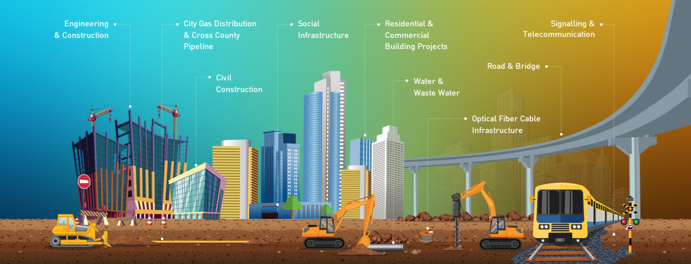 The Company is engaged in wide array of segments comprising of Civil Infrastructure, Irrigation, Railways Engineering, Signaling & Telecommunication, Gas Distribution and Roads & Bridges.
